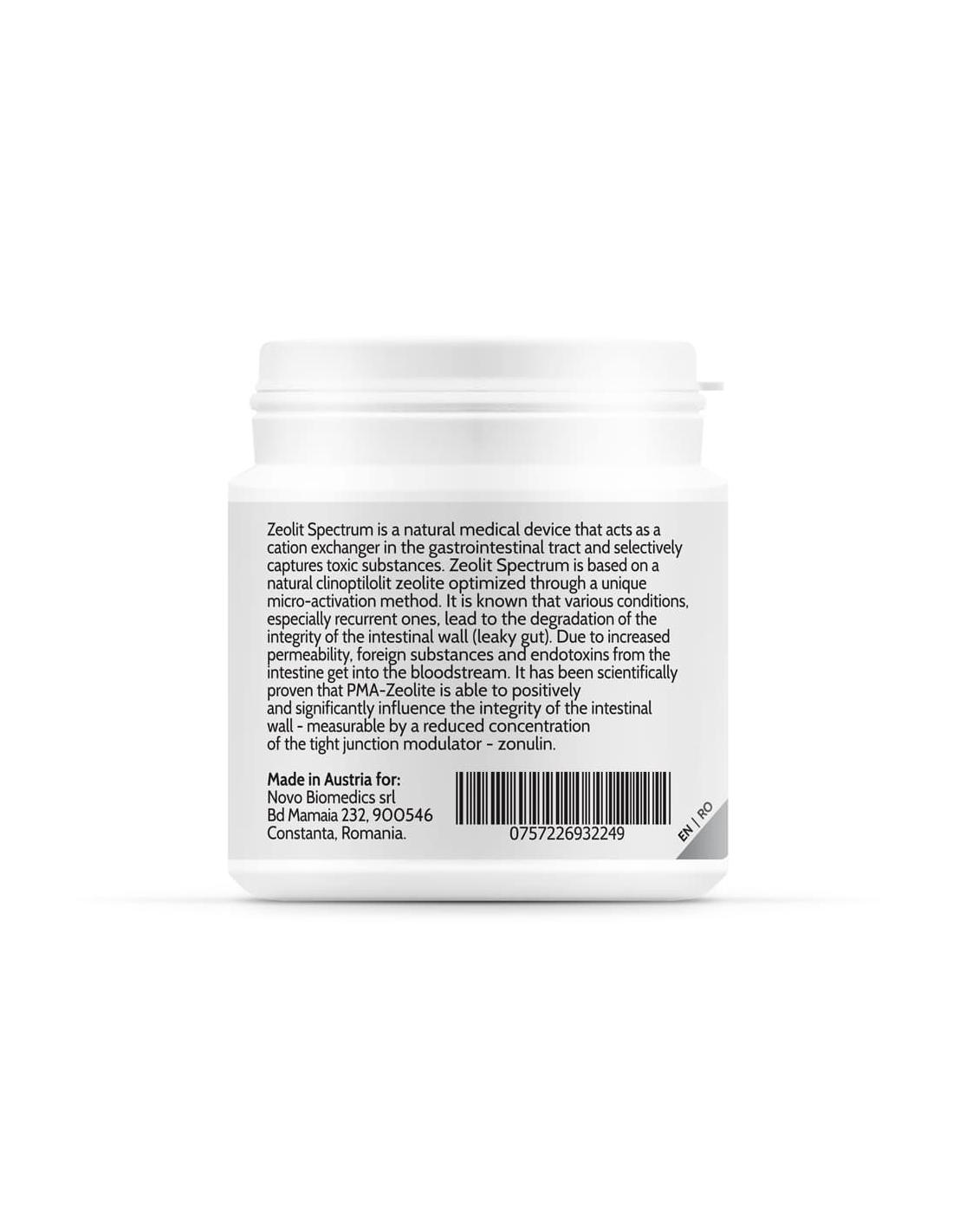 Zeolit Spectrum conține zeolit de calitate farmaceutică, purificat printr-o tehnologie patentată. Această formă specială are capacitatea de a atrage și reține selectiv substanțele nocive din tractul gastrointestinal, precum metale grele, amoniu și alte toxine.
