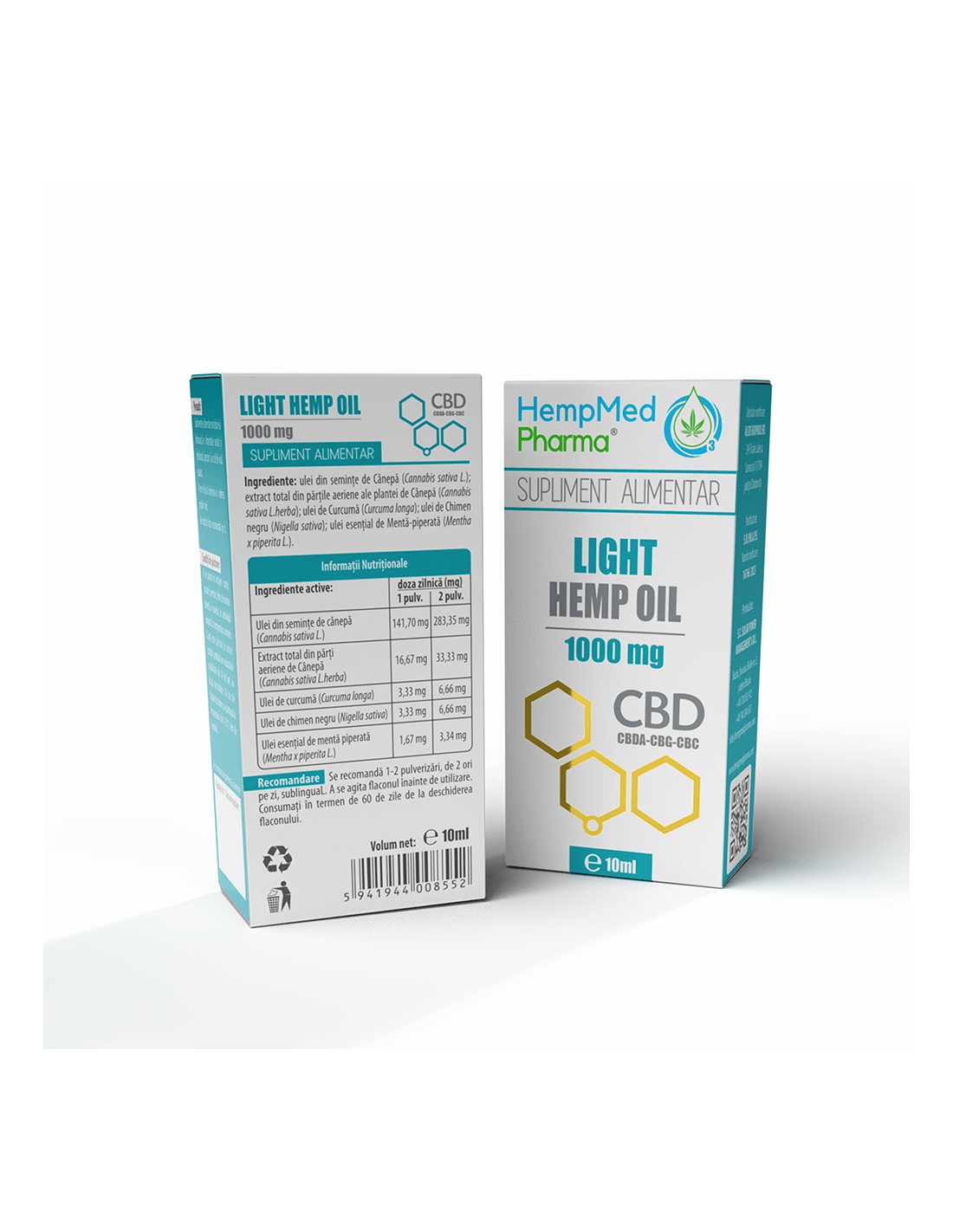 Uleiul CBD Light Hemp 1000 mg HempMed Pharma este un supliment alimentar cu efect relaxant, echilibrant și antioxidant, conceput pentru susținerea stării generale de bine și adaptarea organismului la stresul zilnic.