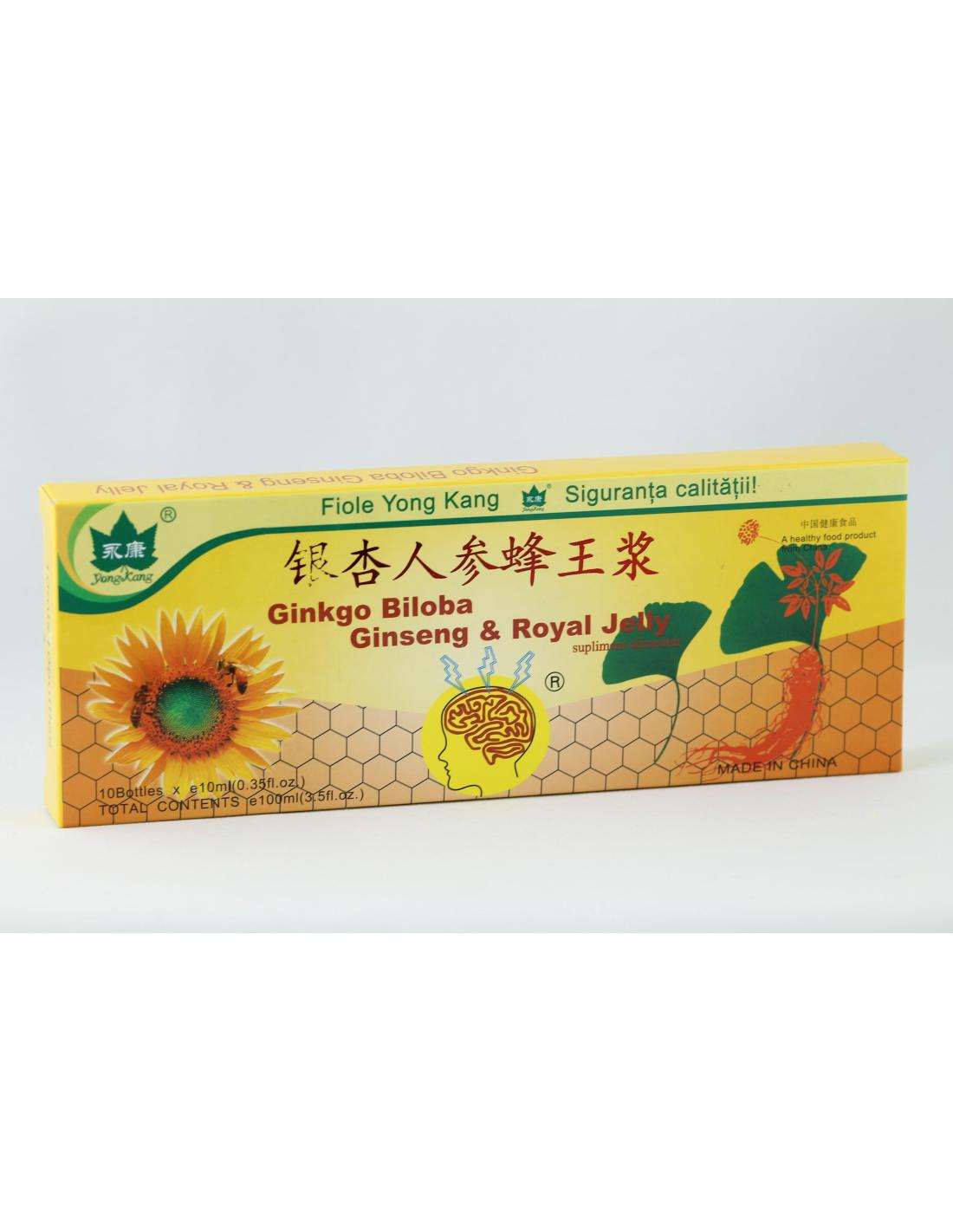Ginkgo Biloba Ginseng si Royal Jelly,10 fiole, Yong Kang