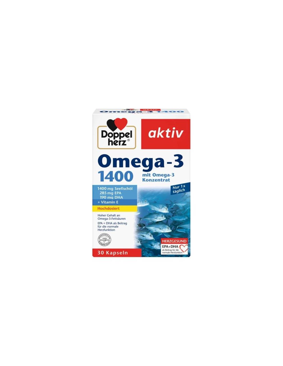 Supliment alimentar Omega 3 1400, 30 capsule, Doappelherz din ulei de pește concentrat, ce contribuie la buna funcționare a inimii. Uleiul de peste reprezinta una dintre sursele cele mai bogate in acizi grasi polinesaturati.