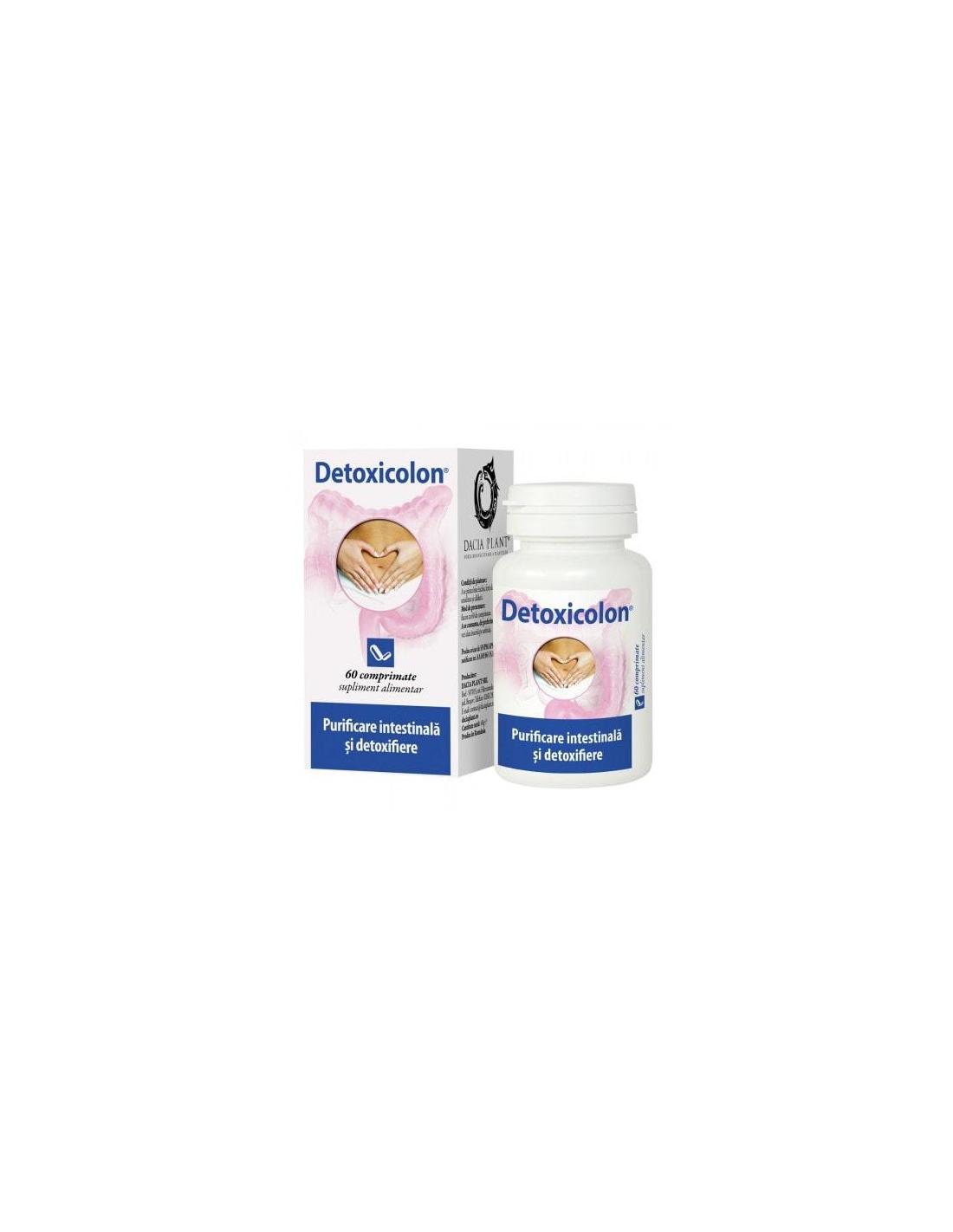 Supliment alimentar Detoxicolon, 60 comprimate, Dacia Plant pentru eliminarea toxinelor din intestin, accelerarea tranzitului intestinal si armonizarea greutatii corporale.