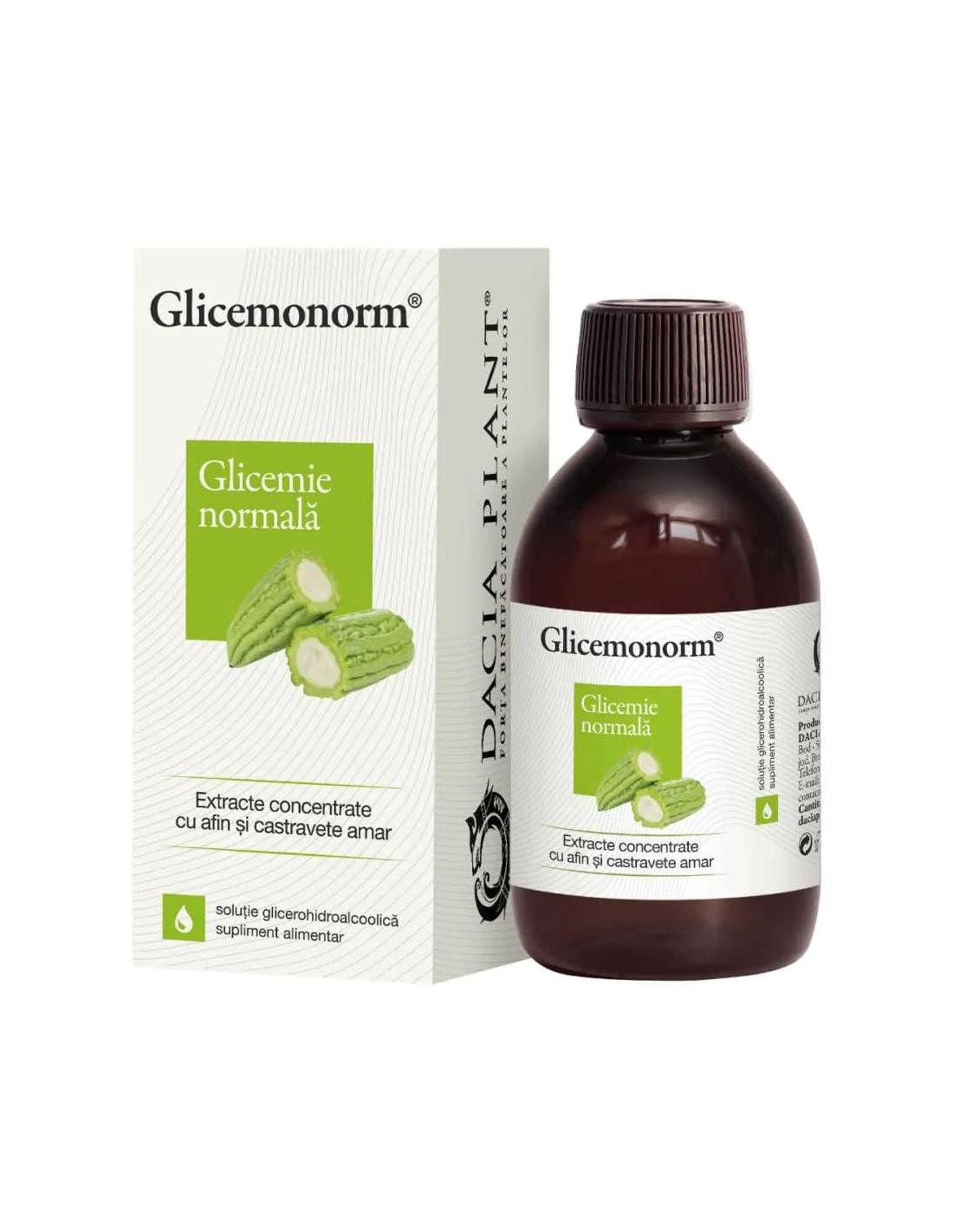 Glicemonorm Tinctura, 200 ml, Dacia Plant este un produs natural recomandat pentru mentinerea concentratiei normale a glucozei din sange.