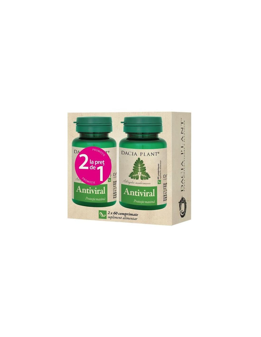 Supliment alimentar Antiviral (Pachet 2 cutii), Dacia Plant cu actiune imunostimulenta si antivirala, fiind recomandat in viroze respiratorii si infectii virale cu diverse localizari.