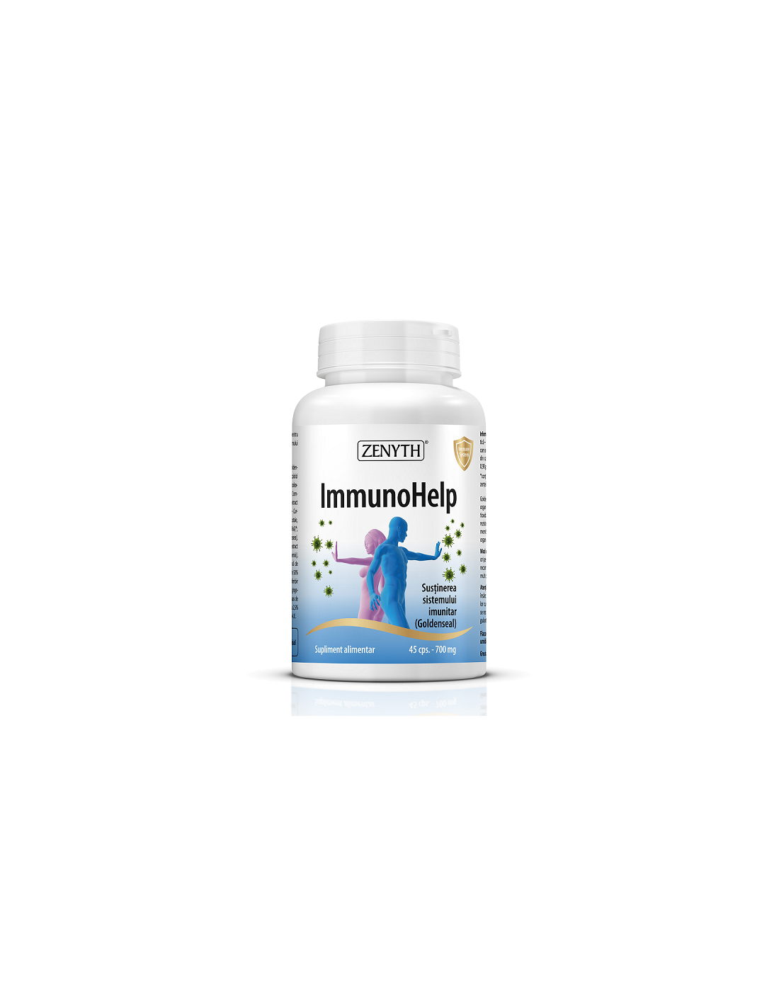 ImmunoHelp, 45 capsule, Zenyth formulă complexă pentru întărirea sistemului imunitar, util în răceală și gripă. Suplimentul este recomandat tinerilor, adulților și vârstnicilor pentru susținerea funcționării normale a sistemului imunitar.
