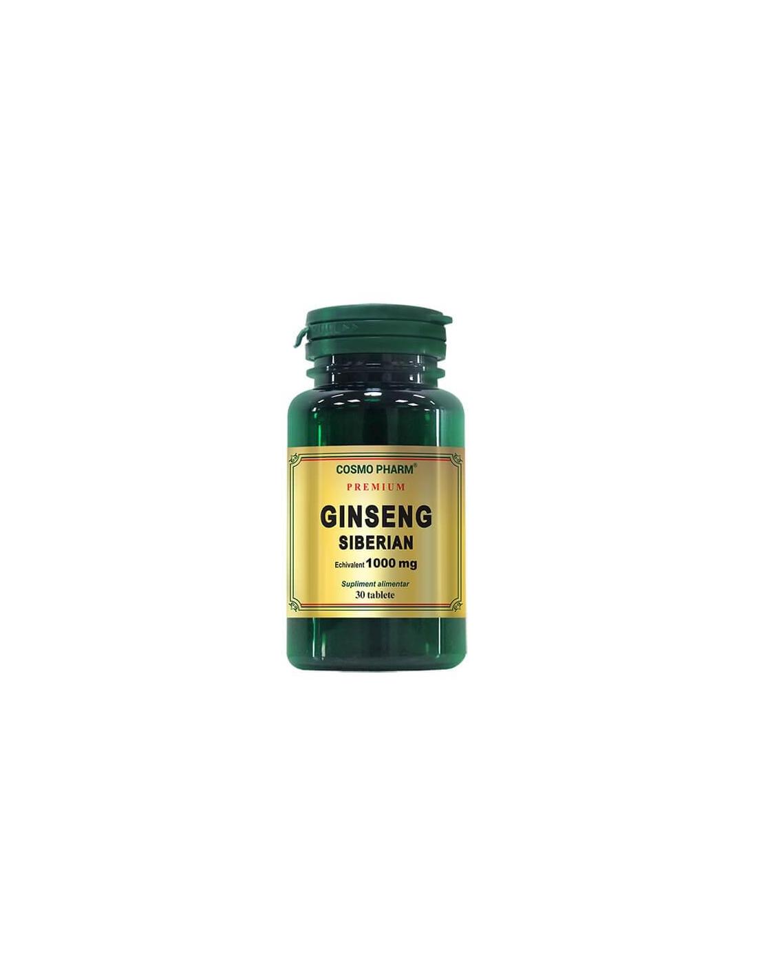 Suplimentul alimentar Ginseng Siberian Premium, 60 tablete, Cosmopharm contribuie la energizarea si vitalizarea organismului. Actioneaza cu efect afrodisiac, creste masa musculara si fertilitatea. In plus, ajuta la imbunatatirea performantelor intelectuale si rezistenta la stres.