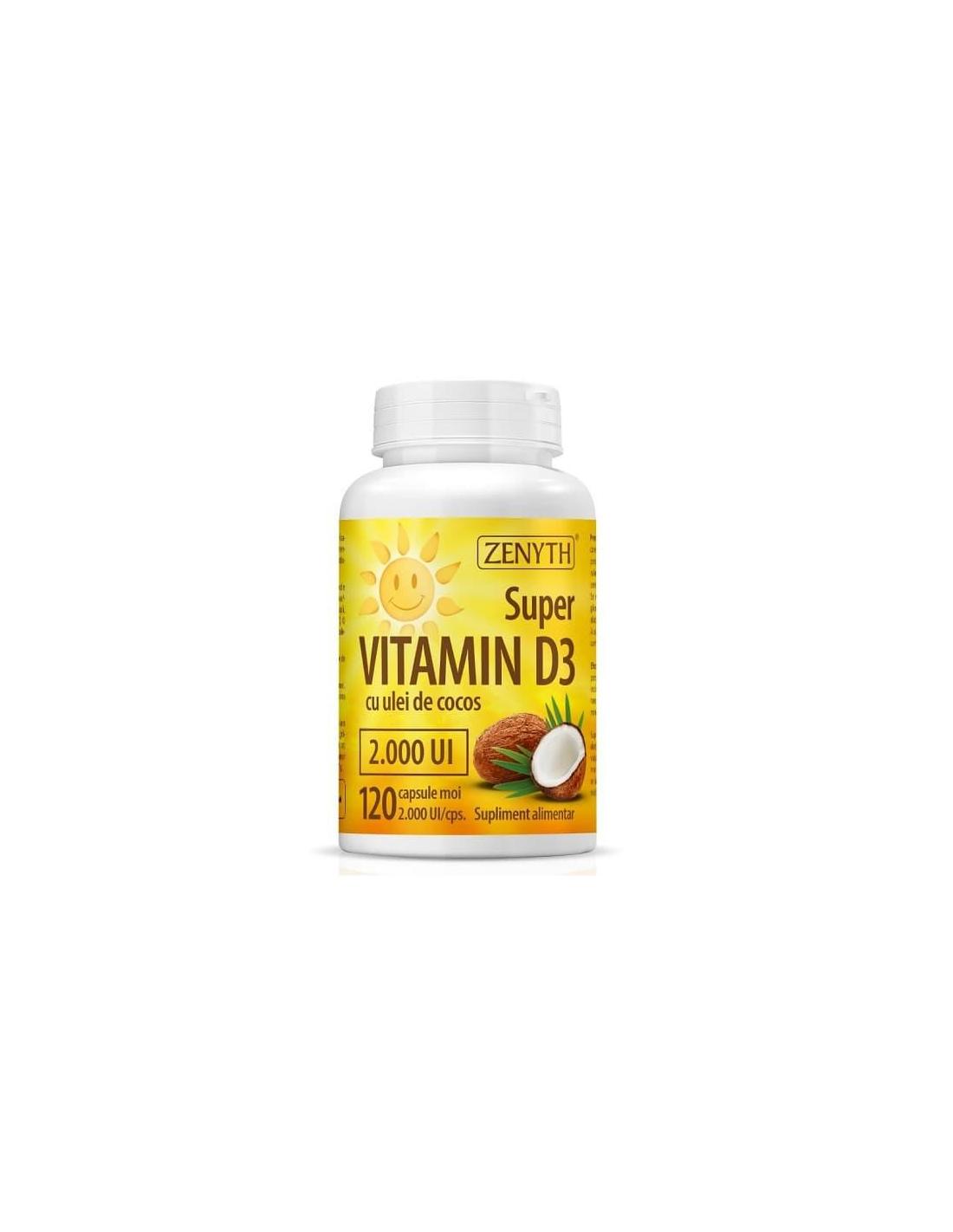 Super Vitamina D3 2000UI, cu ulei de cocos, 120 capsule, Zenyth