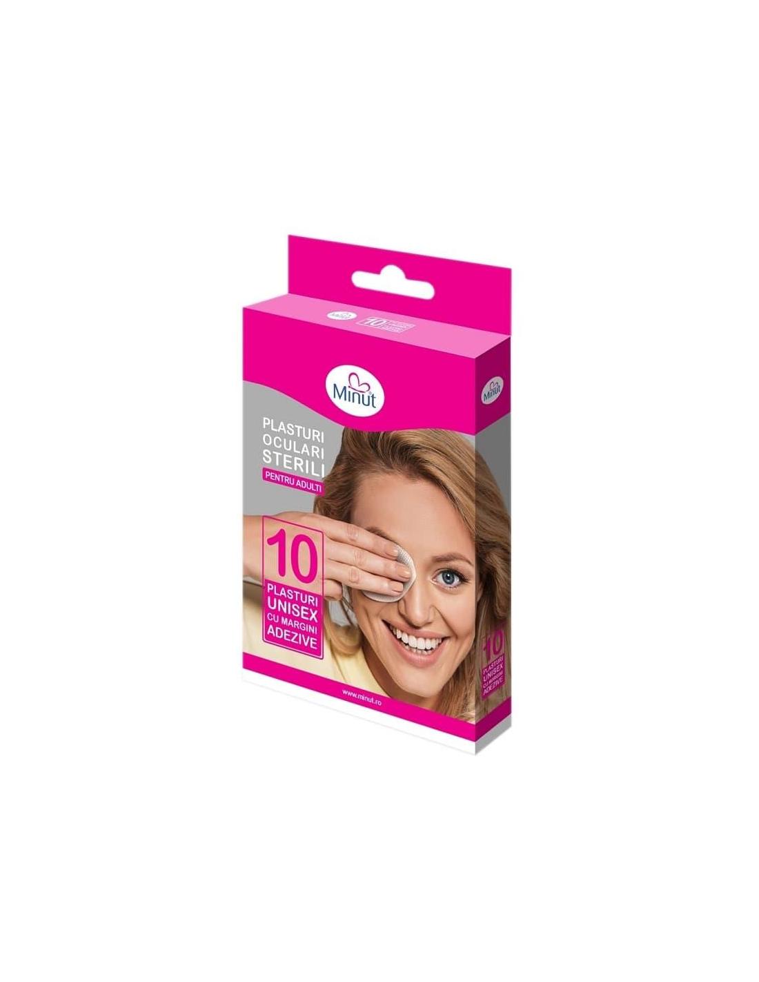 Plasturi pentru Ochi, Ocluzor Adulti, 10 buc, Minut este un pansament steril care se poate folosi pentru protectia ochiului dupa operatie, ajuta la prevenirea infectiilor la ochi.