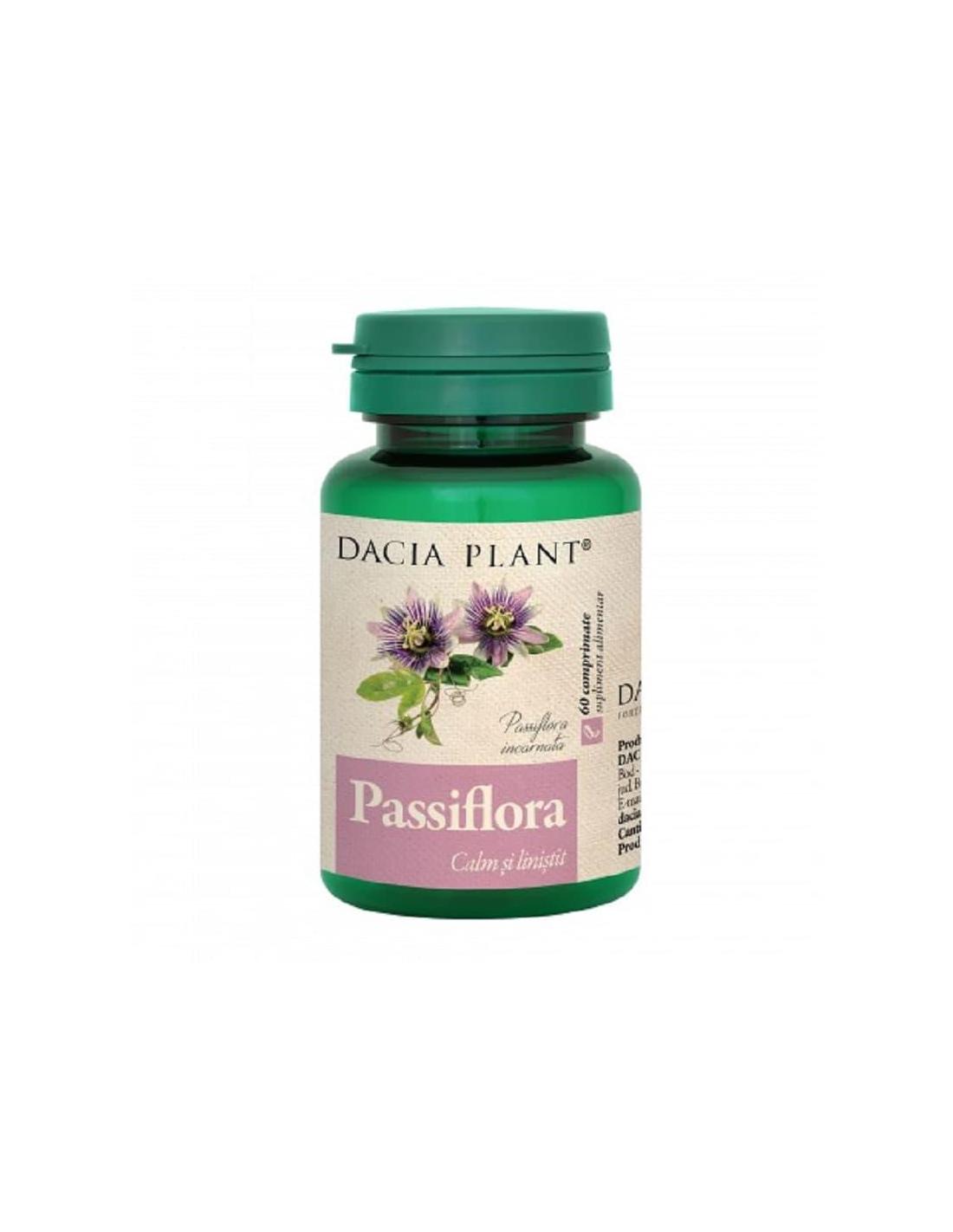 Supliment Passiflora, 60 comprimate, Dacia Plant un produs natural ce protejeaza organismul impotriva stresului si este recomandat pentru reducerea tensiunilor psihice.