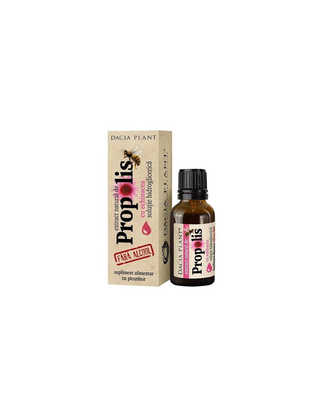 Tinctura de Propolis cu Echinacea (picurator), 20 ml, Dacia Plant este un produs natural destinat mentinerii sanatatii cailor respiratorii, a cavitatii bucale si a pielii.