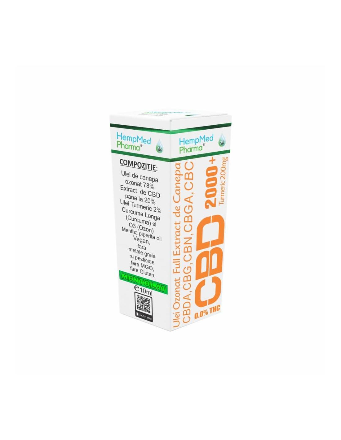 HempMed Pharma, Ulei Ozonat de Canepa CBD 2000 mg + Turmeric 200 mg, 10 ml